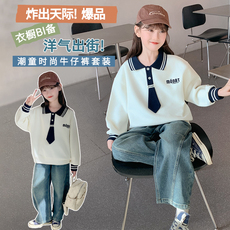 女童卫衣牛仔裤套装春季新款儿童POLO衫上衣两件套女孩休闲裤童装