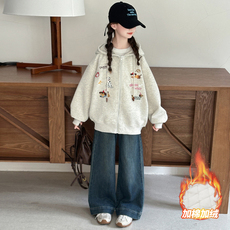 女童冬装套装2026新款秋冬加绒保暖卫衣大童休闲牛仔裤洋气两件套