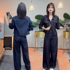 休闲牛仔套装女时尚减龄显瘦百搭小个子穿搭牛仔外套阔腿裤一整套