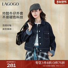 唐狮新款春秋季女牛仔外套减龄翻领小个子短款独特女士上衣w7