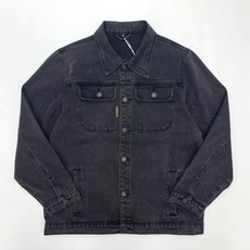 深灰牛仔夹克男重水洗做旧宽松短款牛仔衣街头机车日系复古外套女
