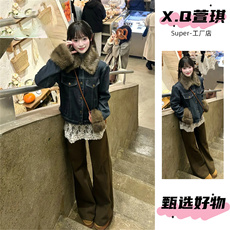 2025秋冬新款狐狸毛领兔毛内胆时髦小个子牛仔外套女短款上衣夹克