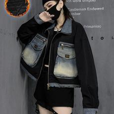 欧货时尚两面穿牛仔外套女秋冬百搭宽松小个子短款加绒保暖棉服潮