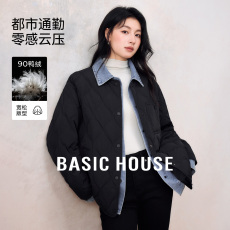 Basic House/百家好假两件牛仔拼接轻薄羽绒服秋冬小个子短款外套