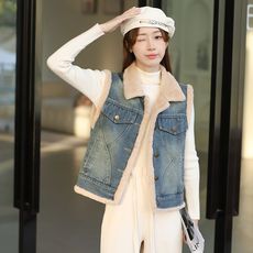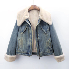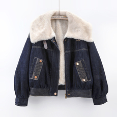 2025冬季新款韩系仿水貂毛加厚加绒牛仔外套女短款小个子上衣夹克