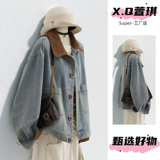 2025年春秋新款高级娃娃领短款牛仔外套女宽松韩版夹克小个子上衣