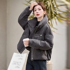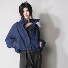 D38可立领可翻领 收缩下摆高腰短款小个子欧美风牛仔复古外套夹克