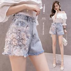 夏季女装韩版批新款发宽松显瘦阔腿热裤高腰时尚破洞毛边牛仔短裤