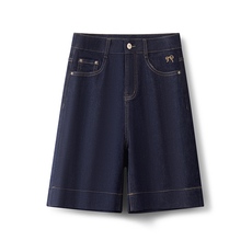 丹宁色明线高腰牛仔短裤女2025年夏季薄款宽松a字阔腿辣妹五分裤