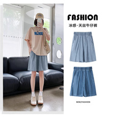 天丝牛仔短裤女夏季薄款高腰显瘦宽松阔腿休闲小个子a字五分中裤