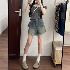 2025夏季新款牛仔高腰韩版短裤女宽松破洞流苏a字阔腿热裤潮潮牌