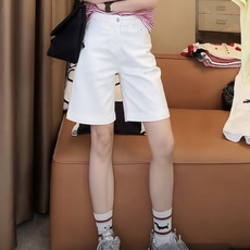 拉夏贝尔白色牛仔裤女2025夏季新款宽松百搭通勤修身时尚高腰短裤