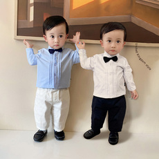儿童Polo衫婴童周岁礼服领结衬衫长袖男宝宝英伦风绅士礼服秋款潮