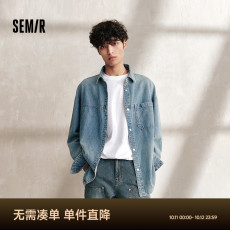 森柔牛仔|森马长袖衬衫男复古水洗牛仔外套秋季宽松上衣内搭外穿