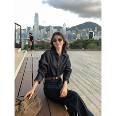 赵露思同款黑色天丝长袖牛仔衬衫女垂感防晒外套薄休闲慵懒上衣潮