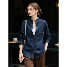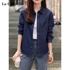 深蓝色牛仔长袖衬衫女2025年秋季新款复古港风休闲百搭牛仔衬衫