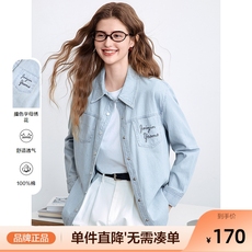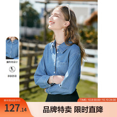 Huangxiaoqi Cowboy春秋季天丝百搭牛仔衬衣女士翻领长袖衬衫上衣
