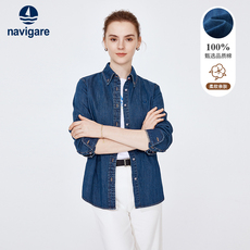Navigare意大利小帆船时尚牛仔服女士纯棉衬衫外套通勤长袖衬衣
