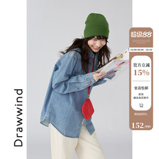 森柔牛仔|森马牛仔衬衫女中长款纯棉复古秋oversize长袖衬衣街头