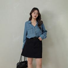 天丝的 复古水洗做旧牛仔衬衫 薄款多口袋工装式长袖衬衫 女