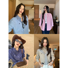 难哄章若楠同款复古蓝牛仔衬衫女叠穿百搭宽松休闲风长袖衬衣上衣