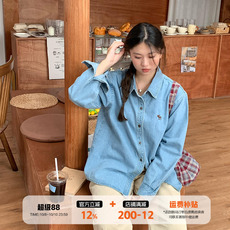 刺绣水洗牛仔长袖衬衫女2023秋季新款日系文艺可爱减龄单排扣上衣