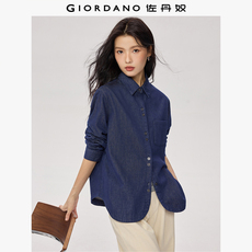 佐丹奴牛仔衬衫女新款复古风纯棉洗水单口袋长袖牛仔衬衣13345862