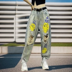 学生显瘦潮牛仔2025韩版批发直筒裤宽松九分烟管裤子春款女装
