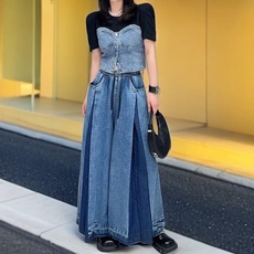 卡佛莲灿清仓国潮设计感百搭修身显瘦拼接钉钻九分牛仔裤女