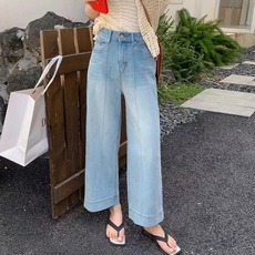 GL韩版宽松小个子四面弹阔腿牛仔裤女春夏新款直筒宽松九分裤3519