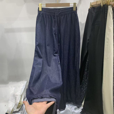 飘带国风刺绣牛仔阔腿裤女2025秋高腰宽松显瘦奶奶裤九分直筒裤