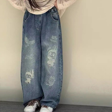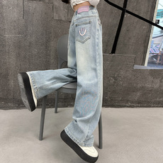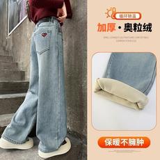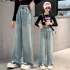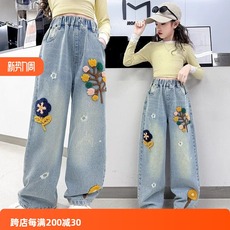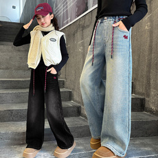 【清仓】国潮女童纯棉软糯牛仔裤25秋冬装韩版宽松直筒裤中大童