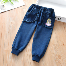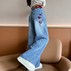 2025春季新款女童纯棉爱心牛仔裤宝宝儿童宽松休闲长裤韩版洋气潮