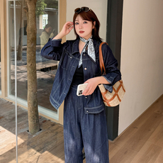 复古印花牛仔背带裤女秋冬胖妹妹韩版大码宽松时尚灯笼阔腿连体裤