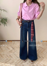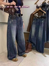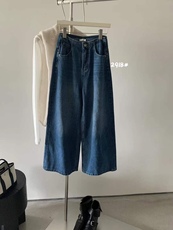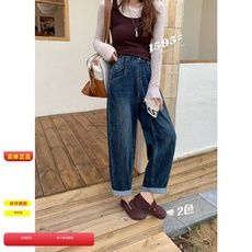 JEANS0839阔腿弯刀牛仔裤女秋季2025韩版宽松百搭休闲长裤MV.AOAO
