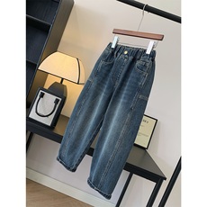 裤型很好男女童韩版洋气贴标牛仔老爹裤中大童宽松休闲萝卜裤24秋