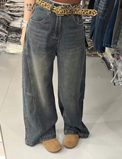 Miss家 2025秋韩版时尚百搭显瘦宽松直筒阔腿牛仔裤女配豹纹腰带