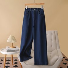 惠衣阁秋季女高腰牛仔裤牛仔直筒裤韩版宽松休闲裤弹力牛仔阔腿裤