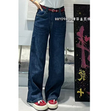 现货欧洲站2025早秋新款百搭显瘦洋气系腰带宽松牛仔裤女
