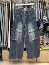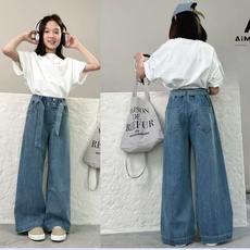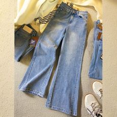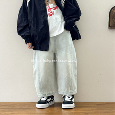品牌春秋款男女中大童装原色韩版水洗牛仔裤宽松休闲裤阔腿直筒裤