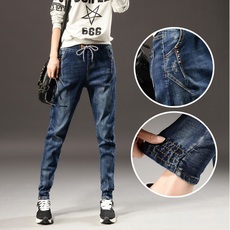 孕妇裤直筒裤秋季外穿时尚抽绳牛仔阔腿裤宽松显瘦休闲百搭韩版女