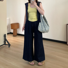 天丝薄款阔腿牛仔裤女2025夏季新款高腰显瘦宽松窄版九分直筒裤子