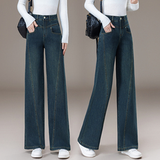 九分阔腿牛仔裤女秋季新款高腰宽松显瘦垂感小个子丹宁蓝直筒裤子