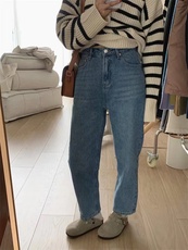 直筒牛仔裤女秋季新款蓝色高腰宽松显瘦九分小个子复古烟管法棍裤