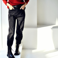 N5537C休闲个性帅气男友风加绒加厚锥型高腰牛仔裤女冬季米兰宣言