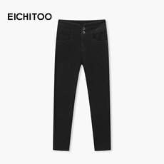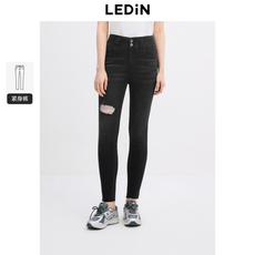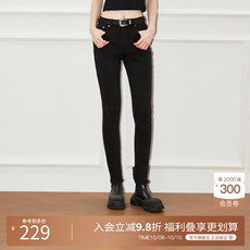 DAZZLE地素奥莱 春夏百搭简约高腰黑色修身牛仔小脚裤裤子女