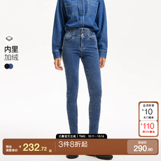 v区绫致Vero Moda牛仔裤秋冬加厚高腰弹力小脚裤子女时尚