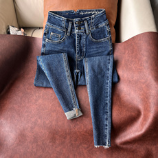 超高腰收腹紧身牛仔裤女秋冬加绒新款网红提臀弹力显瘦小脚铅笔裤