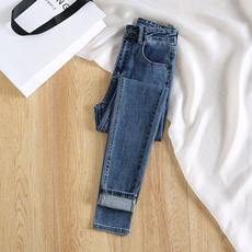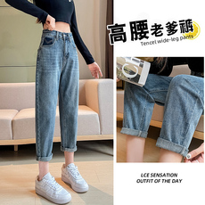 韩版显瘦高腰牛仔老爹裤女士秋宽松显高直筒小脚萝卜哈伦裤子ins