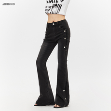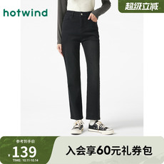 Basic House/百家好高腰黑色牛仔裤女2025秋季新款加绒修身小脚裤